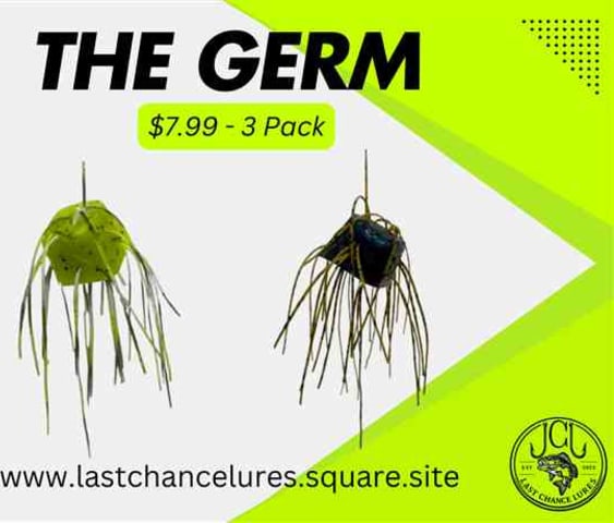 The Germ: a compact skirt-style soft plastic with chaotic action that triggers violent strikes from bass, pike, and more. Its cube body and flowing strands pulse and flare. One bite starts an outbreak & fish after fish gets infected with bites.