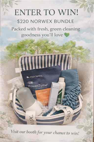 Win a $200 Norwex gift basket. Eco-friendly, chemical-free cleaning for your home, cottage, and boat. Visit our booth and enter the draw today!